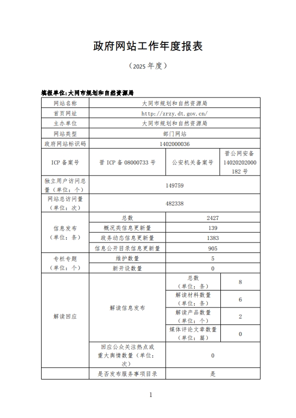大同市规划和自然资源局网站(2025年)工作年度报表.pdf