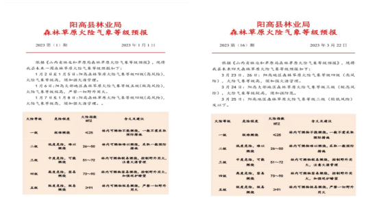 今年以来,依据省林草局森林火险等级预报信息,我县及时发布森林火险等级预报专报,提醒各乡镇、相关部门按照火险预报等级和危险程度积极采取防控措施,强化预警响应。同时,给乡镇下发森林火险提醒函和督办函,提醒各乡镇及时消除安全隐患,切实做到防火于未燃之时、成灾之前。