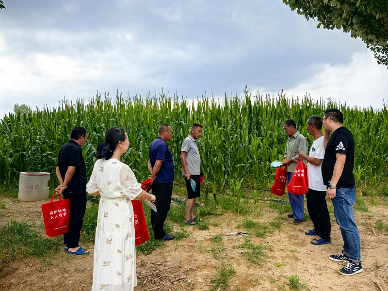 第二宣传会场为田间地头,我局工作人员带领部分村民来到村庄周边的耕地,实地讲解耕地的类型、质量等级以及保护措施。现场查看了耕地的种植情况,向村民介绍了如何合理利用耕地,提高土地产出效率,如推广科学种植技术、合理施肥用药等,鼓励村民积极参与耕地保护,共同守护好这片“饭碗田”。