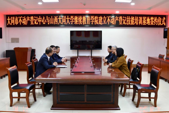 11月21日,在大同市不动产登记中心双方签订合作协议,并在会后举行了揭牌仪式。大同市规划和自然资源局四级调研员王海波、大同大学继续教育学院院长徐忠出席签约仪式。