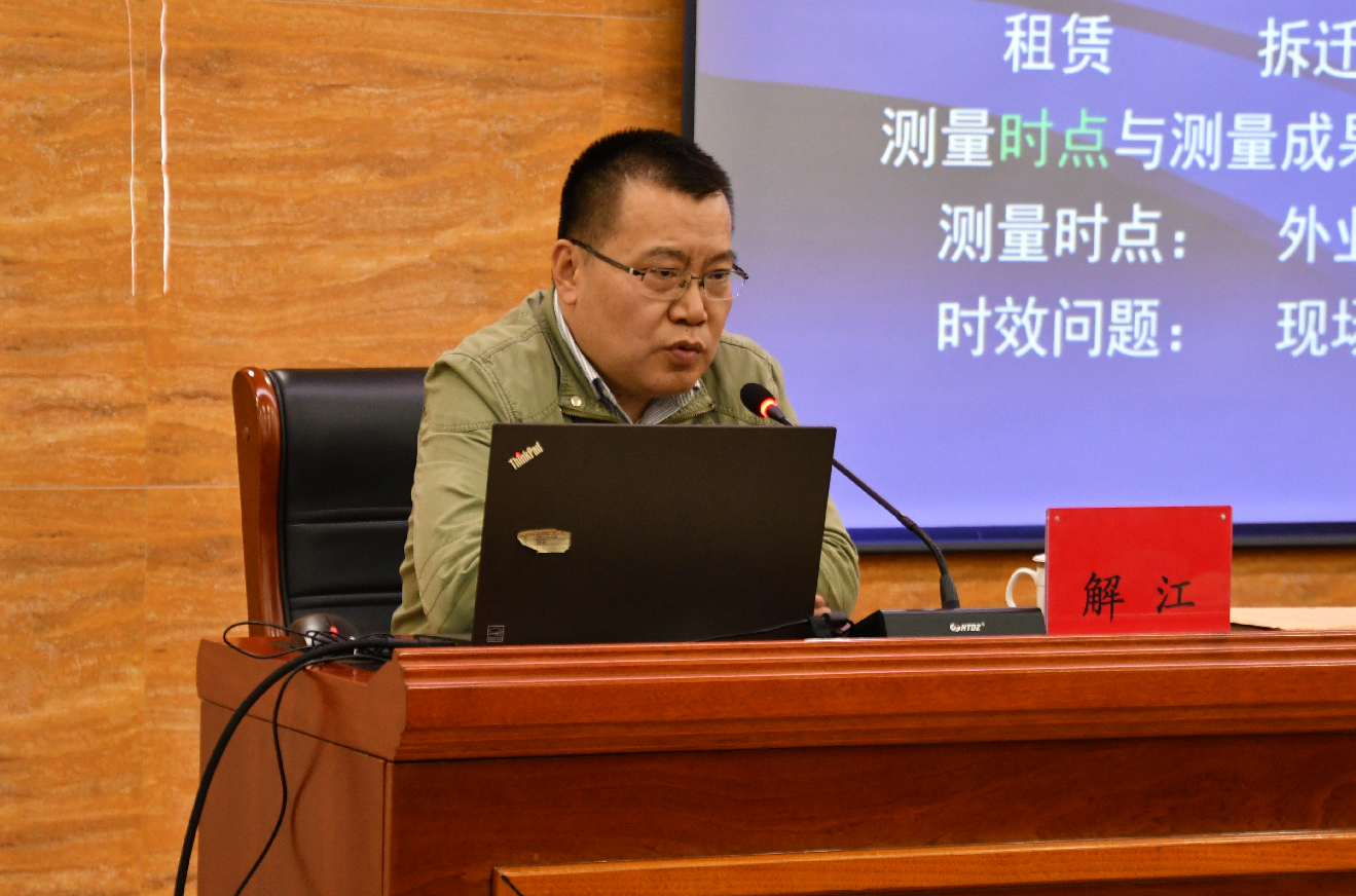 会上,成都房联云码科技有限公司技术讲师林浩对智慧平台业务背景、业务流程、要件材料要求、成果标准格式要点、成果审核要点、成果审核要点六方面进行了详细讲解。历任中国房地产研究会测量委员会专家组成员、陕西省测绘质量检验专家、西安市不动产权籍调查中心副主任解江对不动产测绘问题概述、房屋面积测算相关标准演化、房屋面积测算相关问题分析、共有面积分摊四方面进行了介绍,为参会人员提供了宝贵的行业见解和实践指导。
