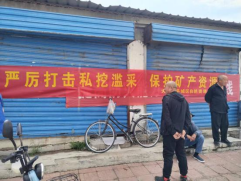 深入社区、乡村悬挂打击私挖滥采宣传横幅标语,发放宣传单普及私挖滥采的法律后果及生态危害。
