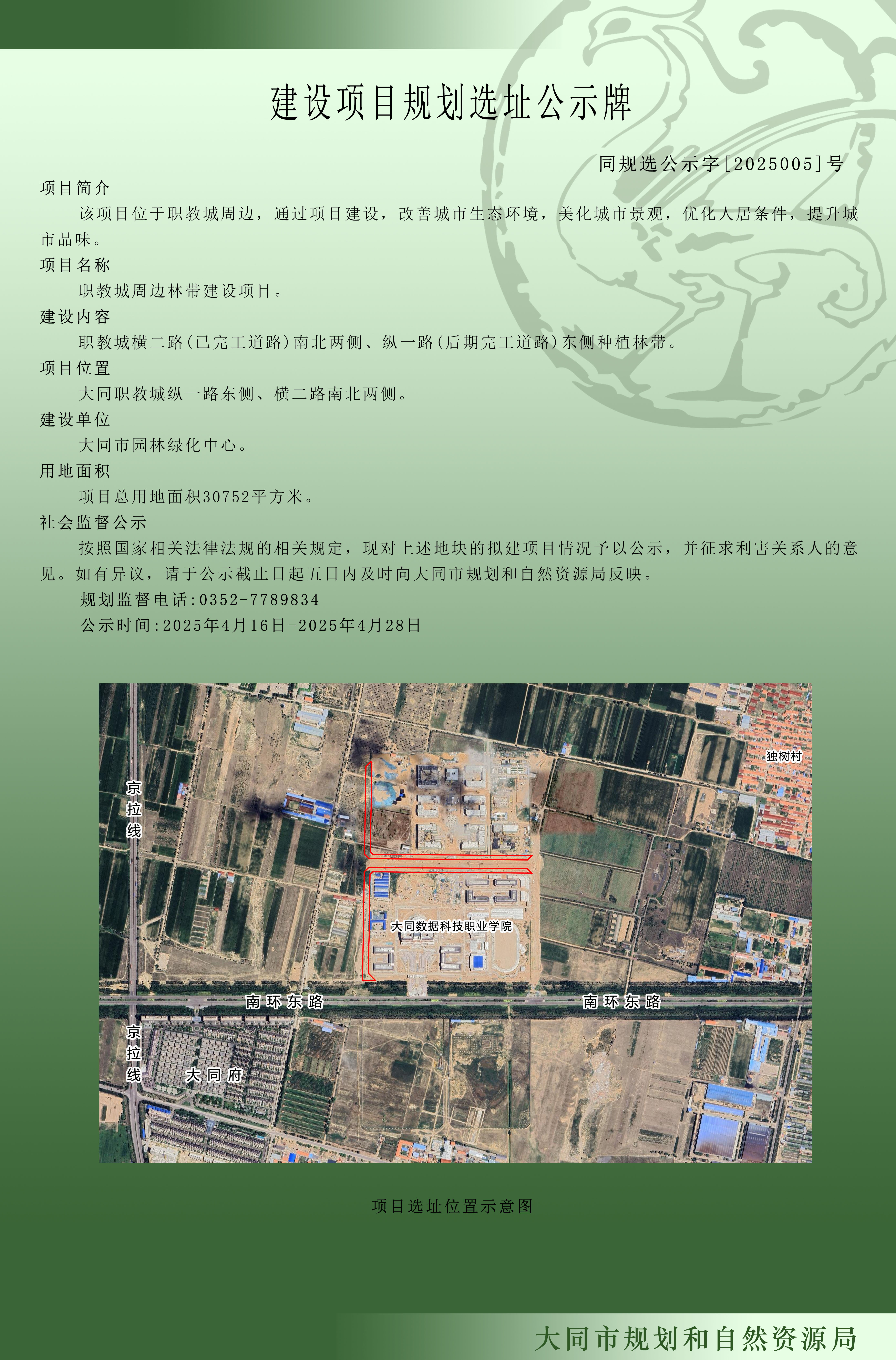 建设项目规划选址公示牌 同规选公示字[2025005]