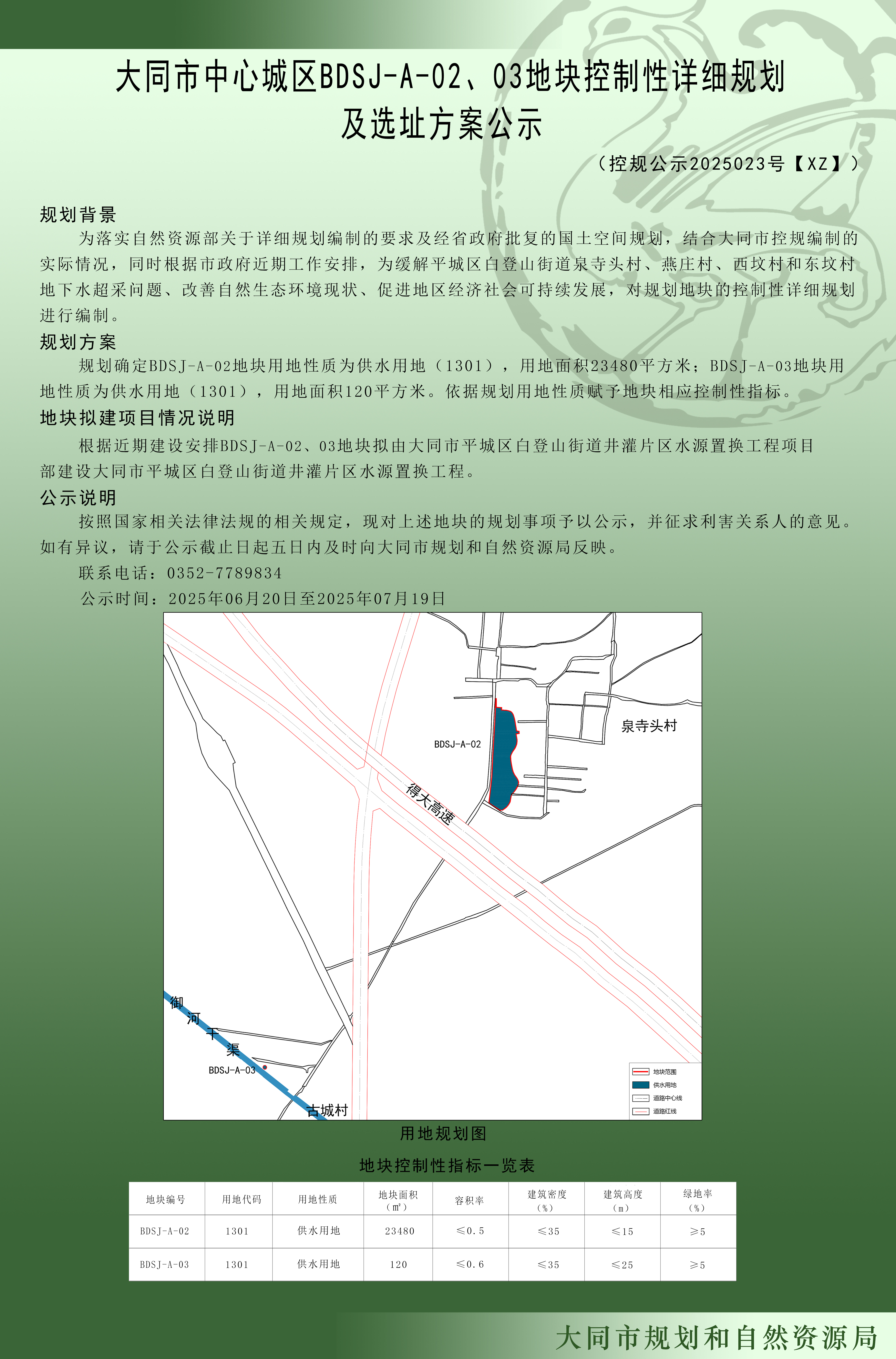 大同市中心城区BDSJ-A-02、03地块控制性详细规划及选址方案公示(控规公示2025023号【xz】)