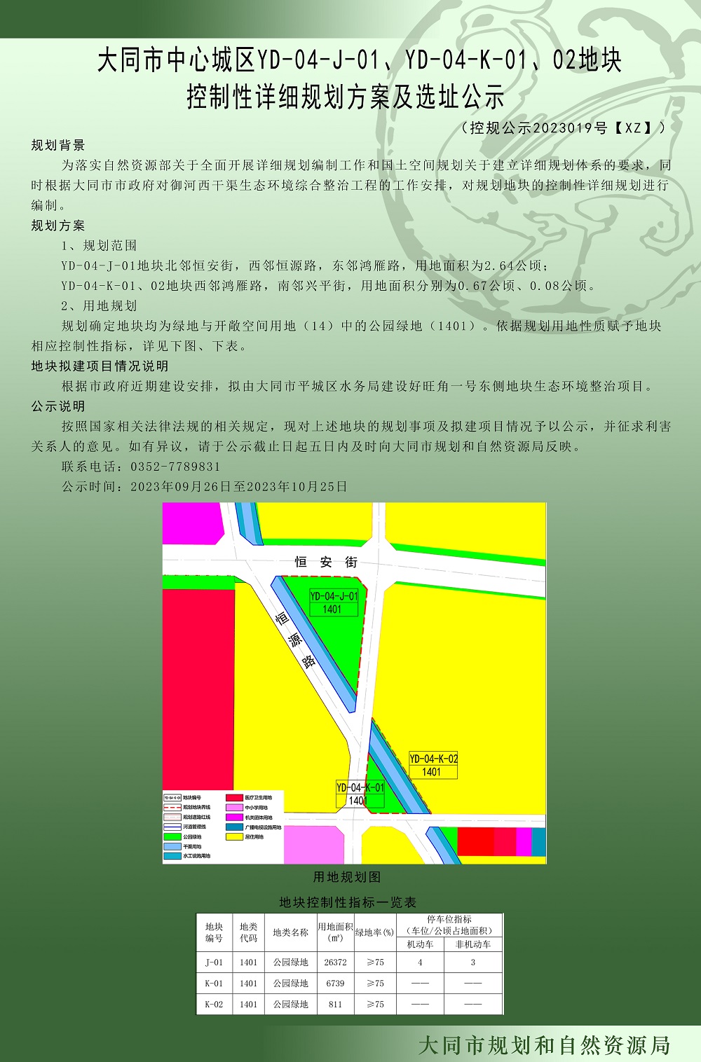 大同市中心城区YD-04-J-01、YD-04-K-01、02地块控制性详细规划方案及选址公示