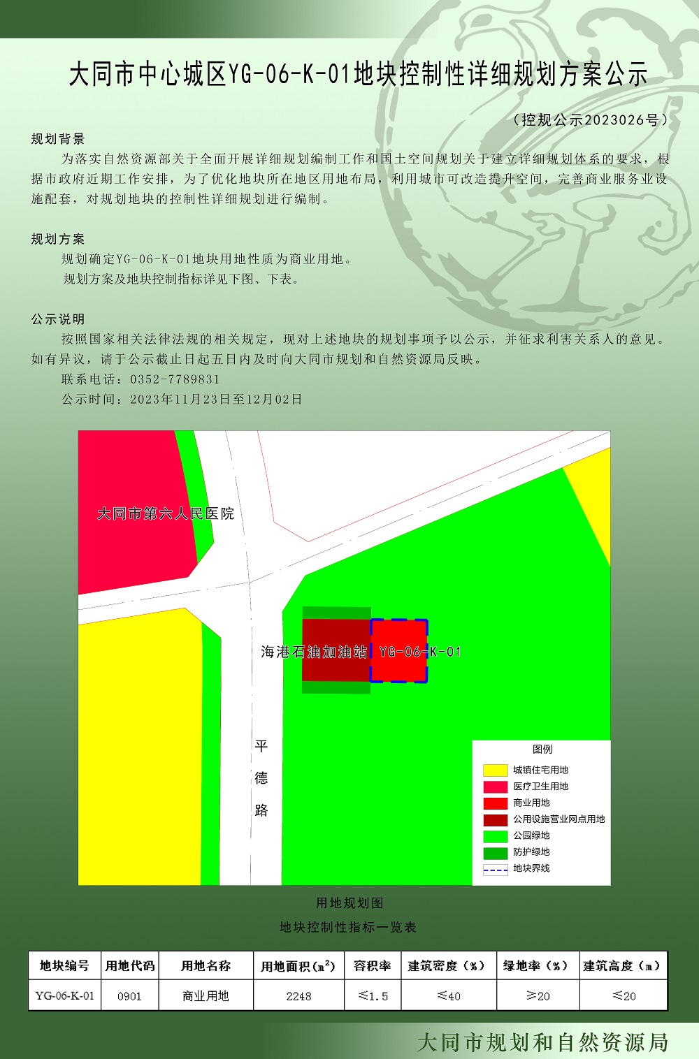 大同市中心城区YG-06-K-01地块控制性详细规划方案公示(控规公示2023026号)
