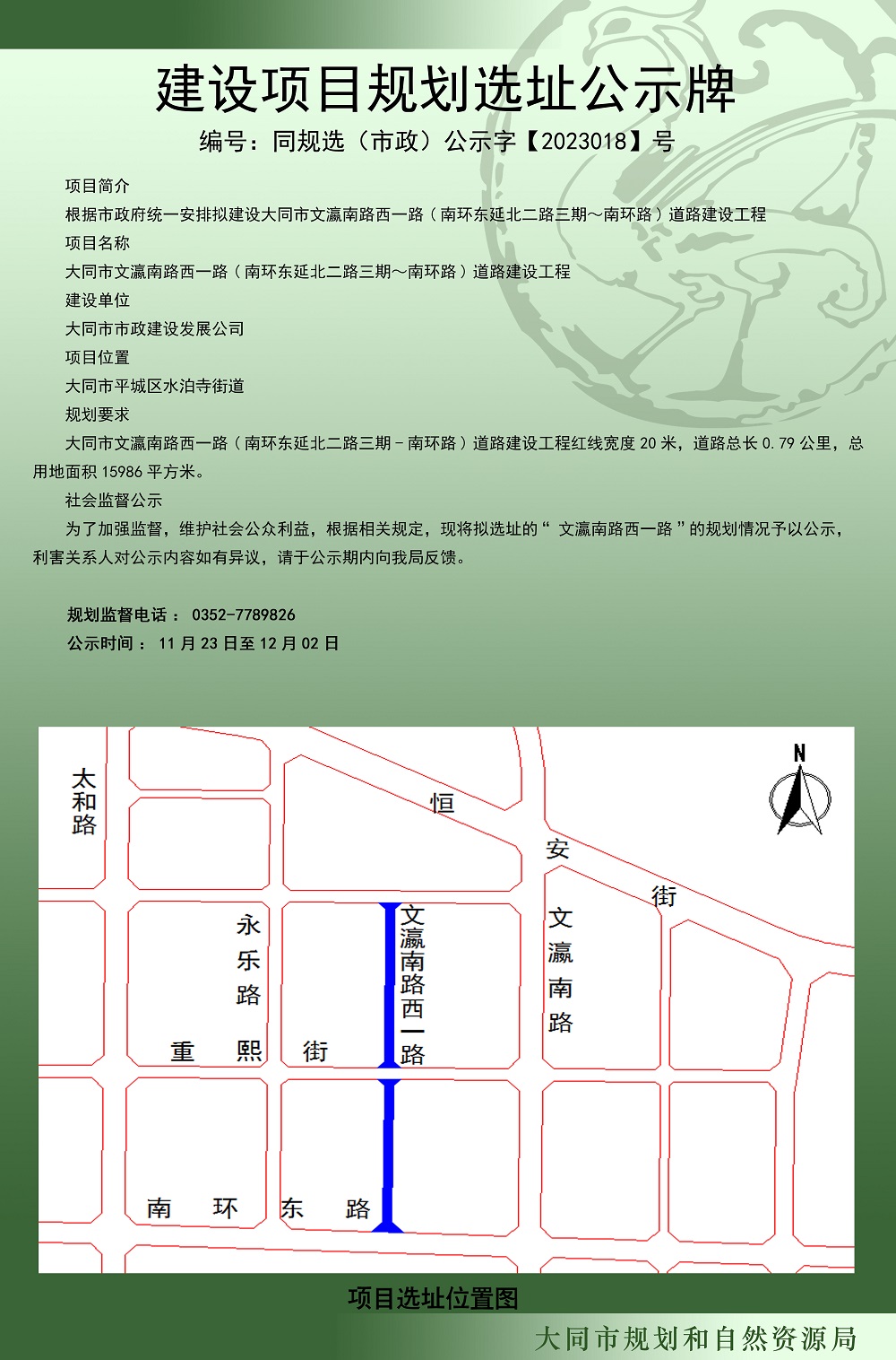 建设项目规划选址公示牌 同规选(市政)公示字[2023018]号