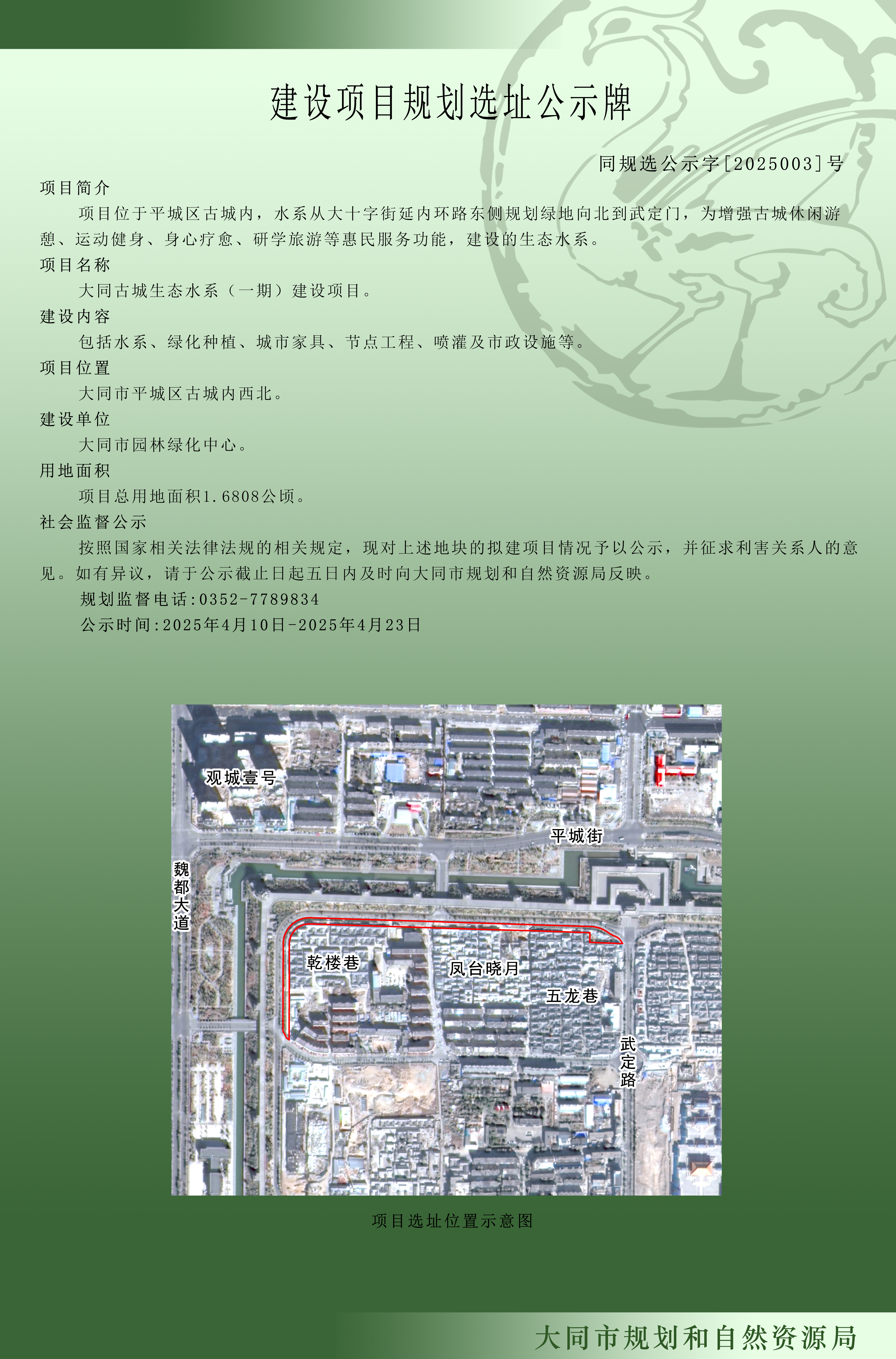 建设项目规划选址公示牌 同规选公示字[2025003]号