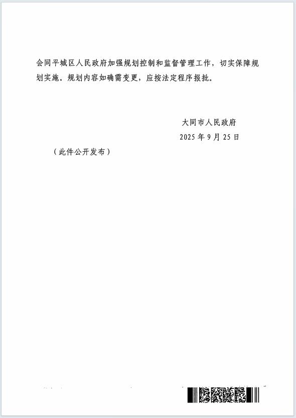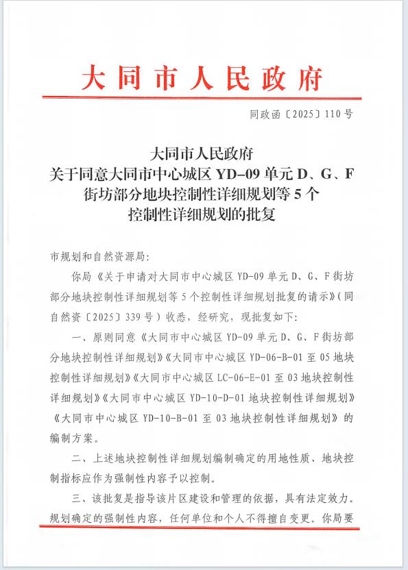 该控规于2025年9月25日经大同市人民政府批准同意(同政函【2025】110号)