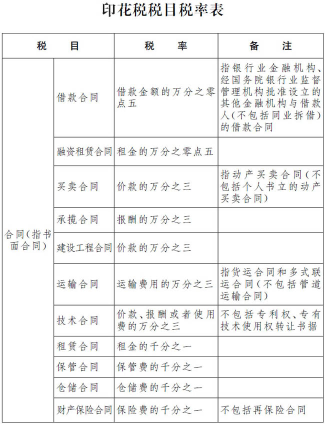 第四条 印花税的税目、税率,依照本法所附《印花税税目税率表》执行。